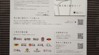 株主優待紹介 物語コーポレーション、買い増して優待が増えるなら絶対買い増したい テレビでも定期的に特集され勢いのある外食店「焼肉きんぐ」や「丸源ラーメン」の運営でもおなじみの物語コーポレーション(3097)から株主優待が到着しました。到着した優待はこちらまずは今回到着した優待の画像です。物語コーポレーションの優待は1年... 2025.10.06 株主優待紹介