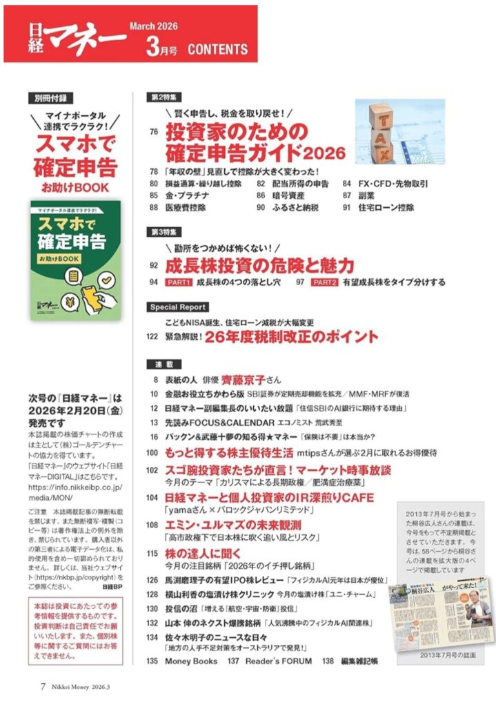 2026年1月21日に発売された「日経マネー2026年3月号」。