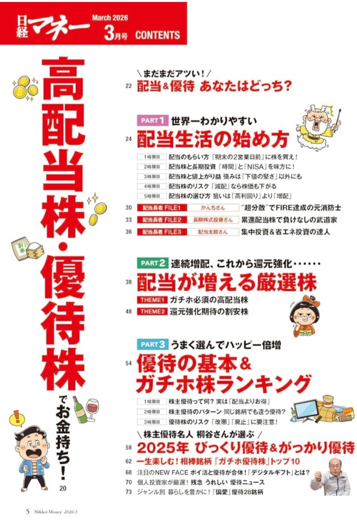この時期は3月権利を前に優待特集が組まれる事が多いのですが、今回日経マネーでも優待特集が組まれ、そちらに私、ほっすんが掲載されました。