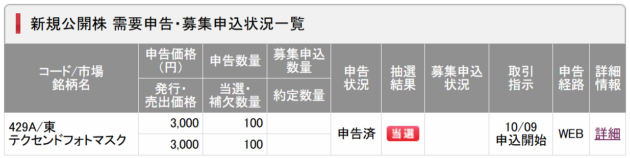 日興証券での当選は東京メトロ以来約1年ぶり。いくら主幹事と言えど当たる気が全くしなかったので意外でした。