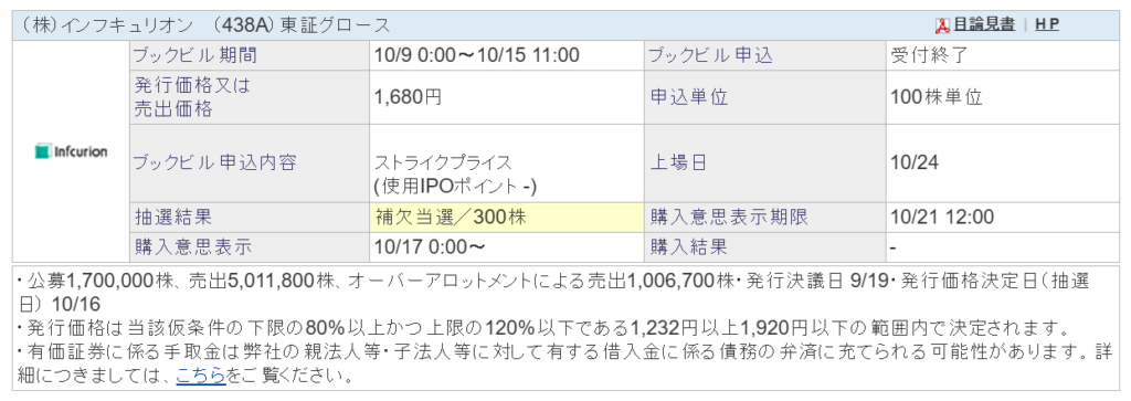 2025年10月16日は、金融・決済基盤の開発と提供などを担うインフキュリオン(438A)のIPO抽選日でした。