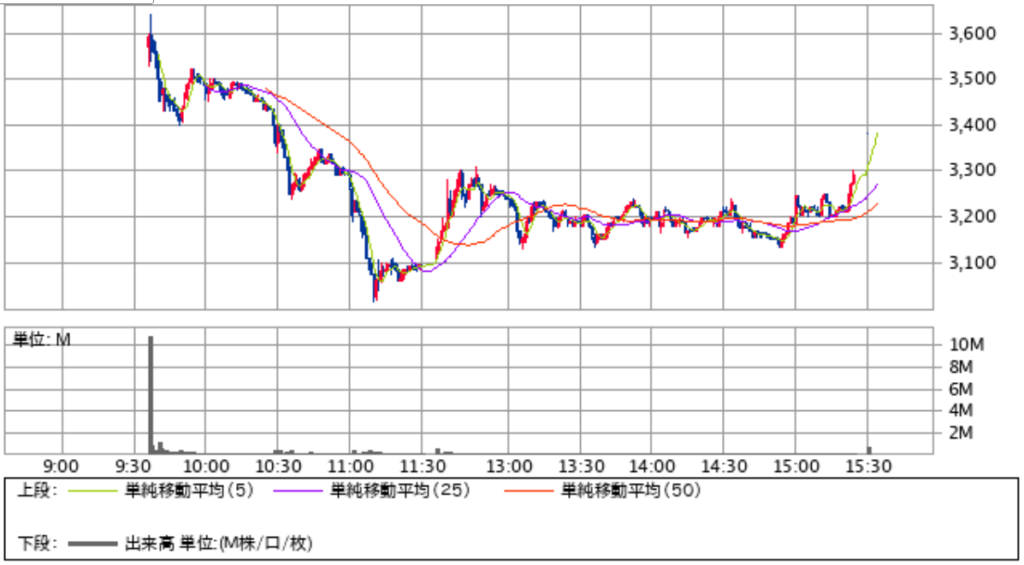 その後株価は下がっていったので初日の判断としては正解だったかな?