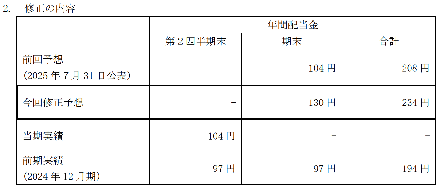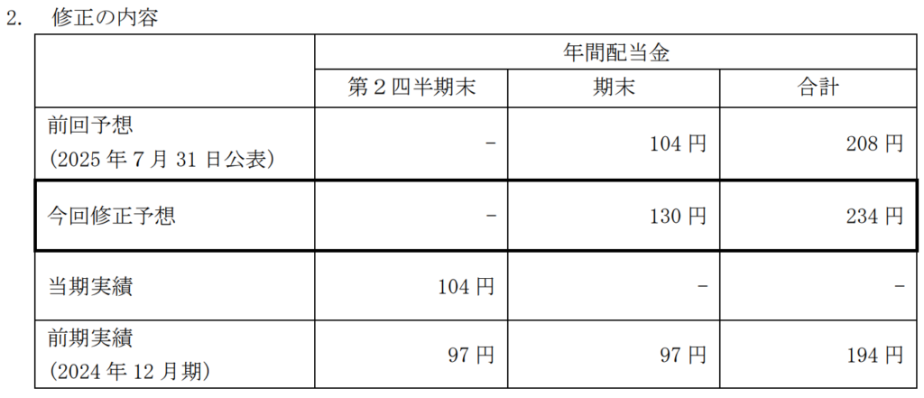 JTの期末配当予想は元々104円(年間配当208円予想)でした。