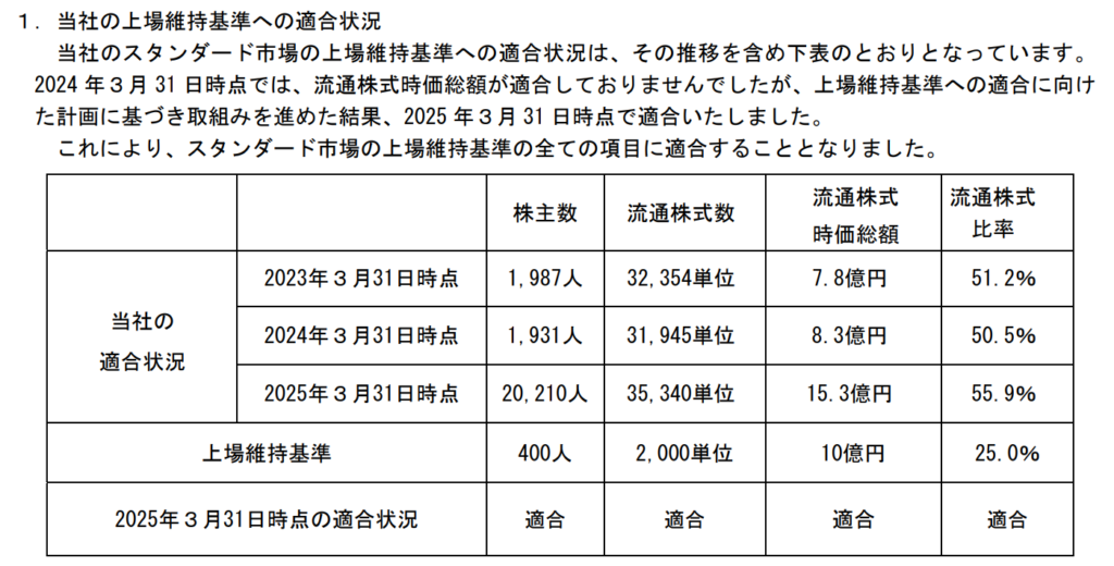 実際に、優待導入時にズバリ「上場維持基準の適合に向けた取り組み」と言及されています。
