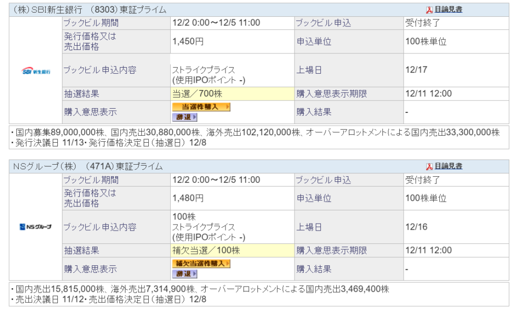 2025年12月8日はSBI新生銀行(8303)のIPO抽選日でした。