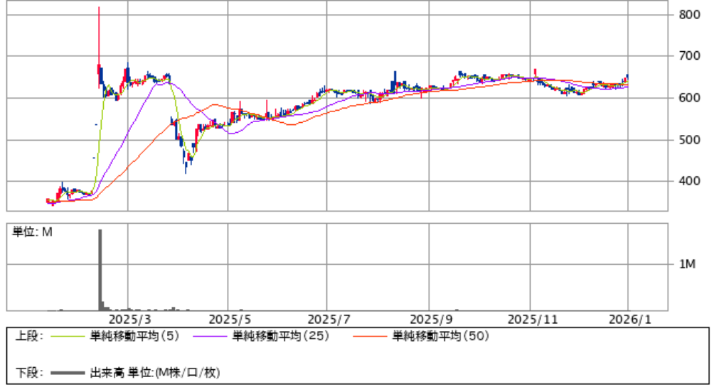 9月末時点で8億円であと2億足りない状況ですが、その時点と2026年1月の優待拡充発表時点でも株価は651円とほぼ変わっていないため、単純計算で株価を少なくとも800円強まで上げる必要があるのです。