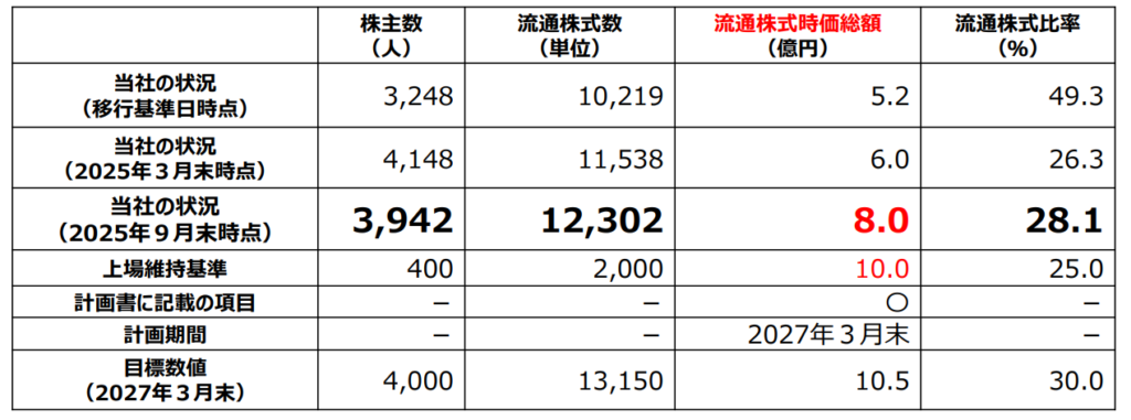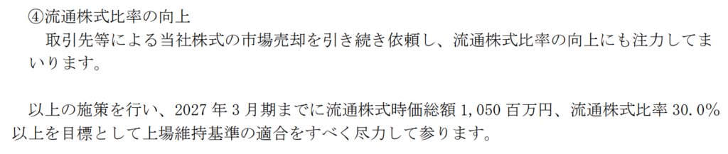 これに加えて、取引先等による株式の市場売却を引き続き依頼し流通株式比率の向上にも注力とありますので、株価対策と並行で進めていくのでしょう(実際に25年3月から9月の間に比率が1.8%上昇)。
