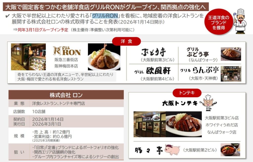 大阪で人気の洋食店も買収(2026年3月1日~)!