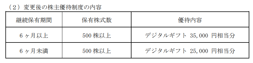 6ヶ月以上保有時のデジタルギフト進呈額が大幅に増額されます。
