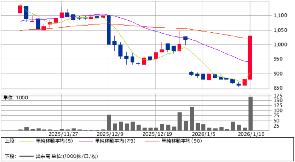 が、今回の優待拡充で一気に急騰。そのまま塩漬けにしていた方は助かりそうですね。