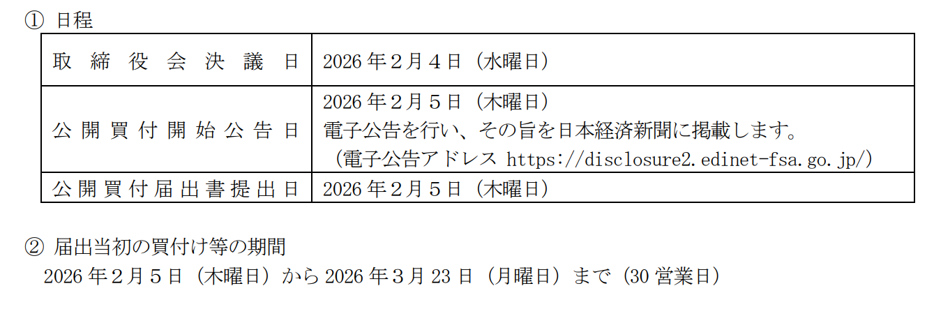 2026年2月4日の引け後、中国・関西地方が地盤の建設業、ビーアールホールディングス(1726)から株式公開買付(TOB)に関する適時開示が出てきました。