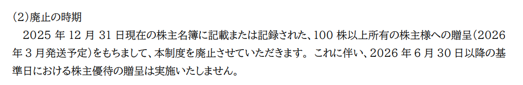 2025年12月権利をもって終了となります!