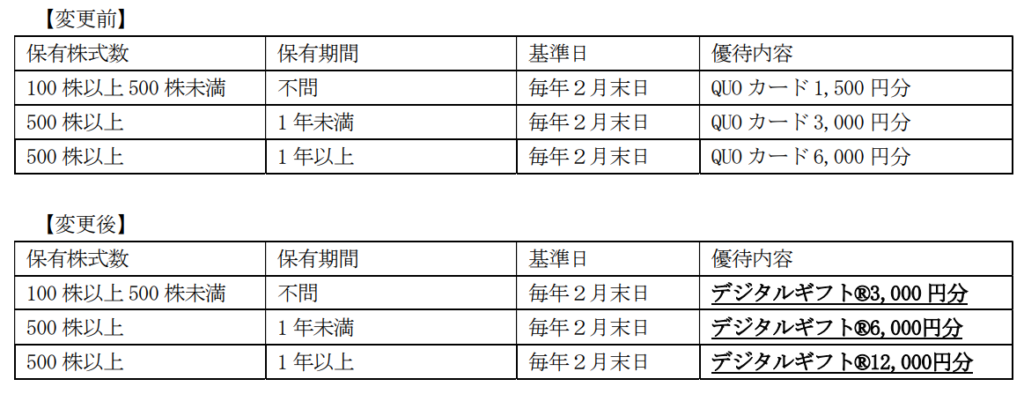 そして25年4月には「次回、26年2月権利はデジタルギフトに変更し金額を2倍にします!」と更なる拡充を発表しました。