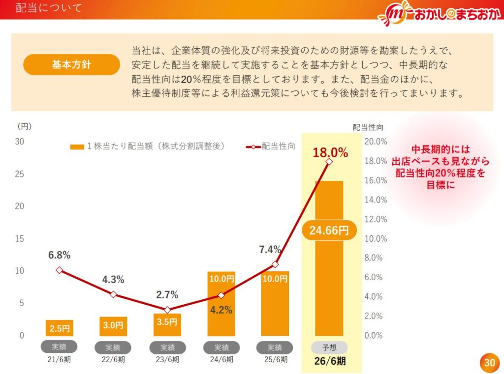 ただ現在の配当性向が既に20%近くとなっており、これが大きく上がらない限り高配当株になる事は無いので配当の方に期待しない方が無難でしょう。