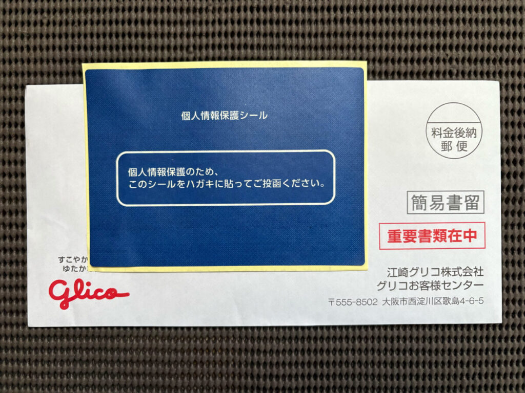 そんな訳でグリコから薄い封筒で簡易書留が到着しました。