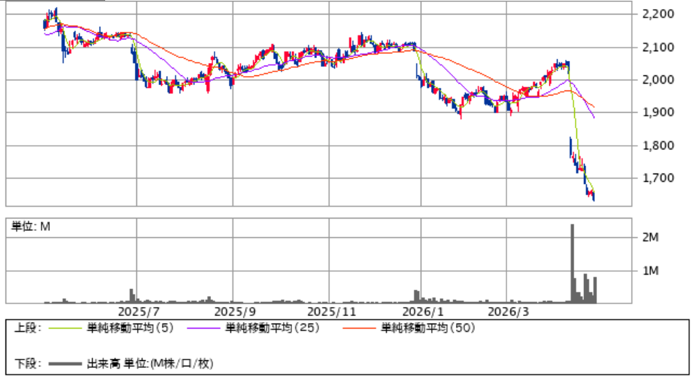 3月まで株価はそれなりに順調に推移していたのですが、4月9日に公募増資と株式売出しを発表し、そこから一気に窓を開けて下落してしまった銘柄でもあります。