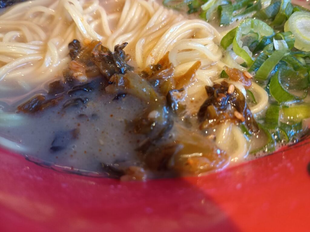 …と言う訳で、私もきっちり細め麺の替玉を頂きました。