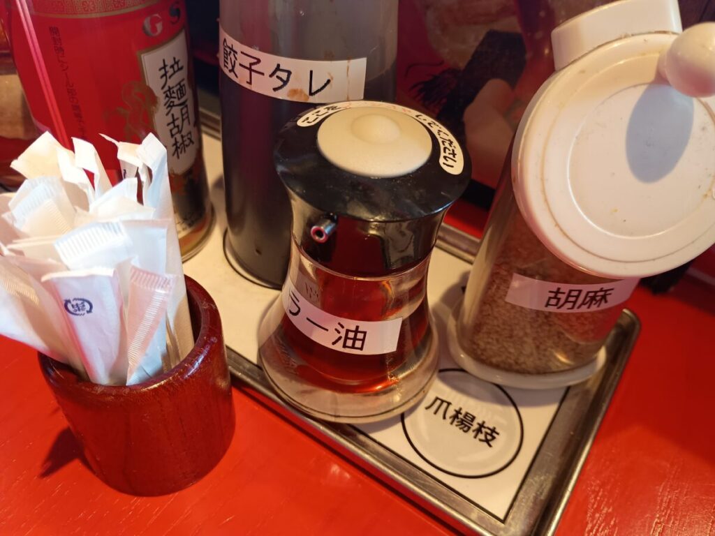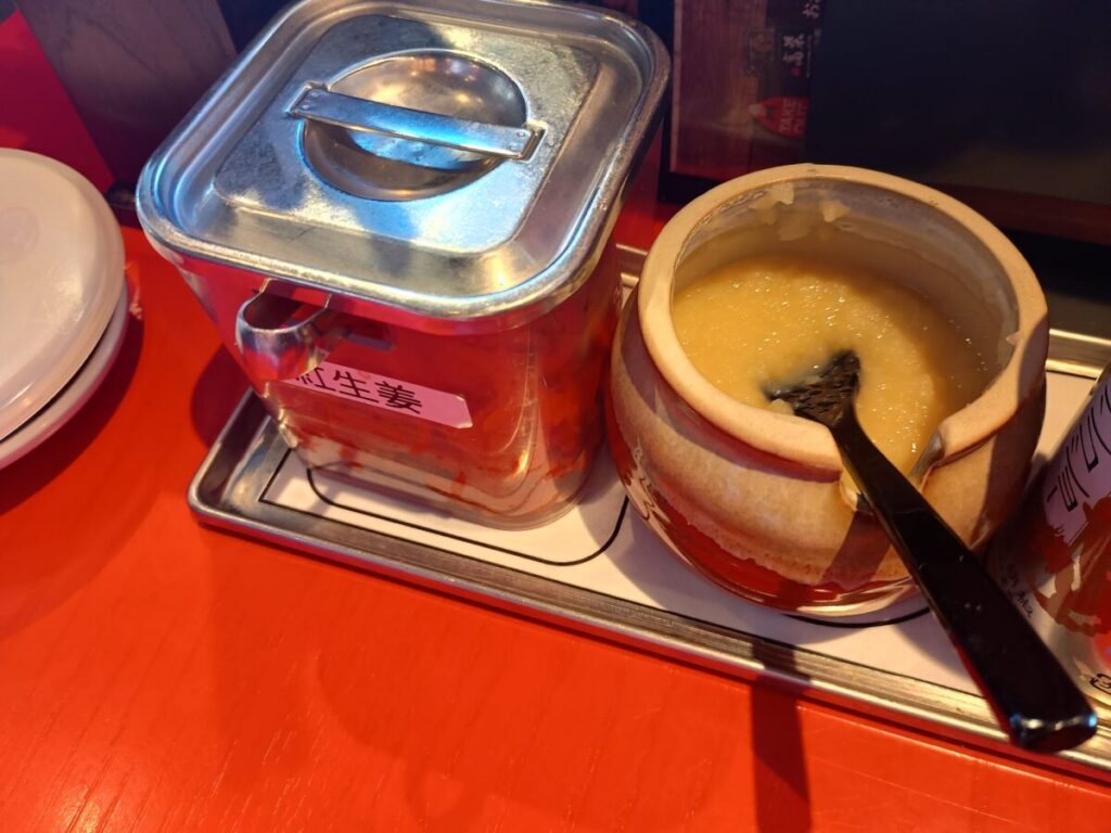 そして紅生姜と生にんにくはテーブルに置かれています。にんにくのふたを開けると結構なにおいが!