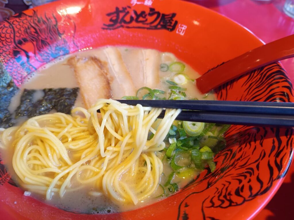 ずんどう屋の基本は豚骨ラーメンです。山岡家は各店でスープを仕込んでいますがこちらではセントラルキッチンで作り味を安定化させているようですね。店の手間も省けるメリットがあります。