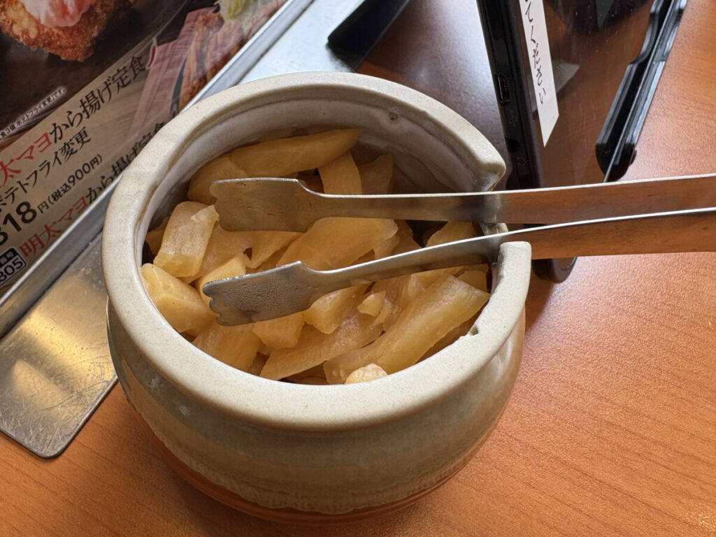 以前あった食べ放題のキムチはさすがに無くなってしまいましたがお漬物があるだけでも十分。