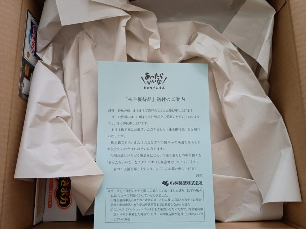 小林製薬の株主優待、アウトレット以外のコースの内容は過去記事をご覧ください。
