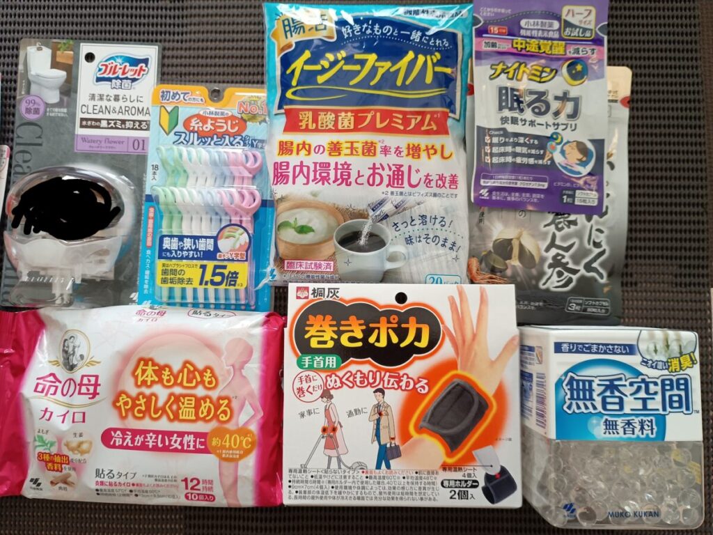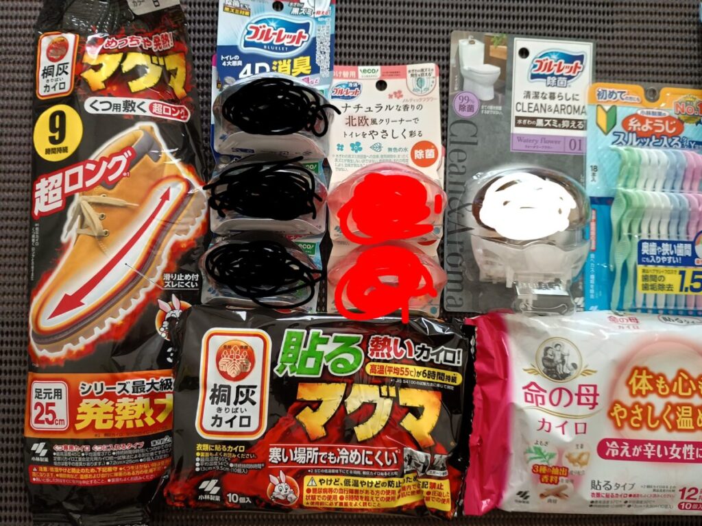 こうやって見るとブルーレットが合計6つ、カイロが合計5つと偏り気味ですね。あとは無香空間に糸ようじ、そしてサプリ系。