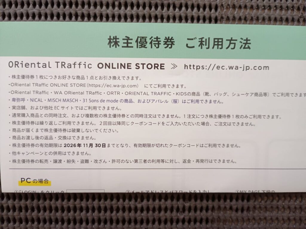 有効期限は約1年と長く、かつ年2回優待なので、優待券を貯めておくことで例えば冬物のブーツが2つ欲しい、なんて願いにも対応できますね。