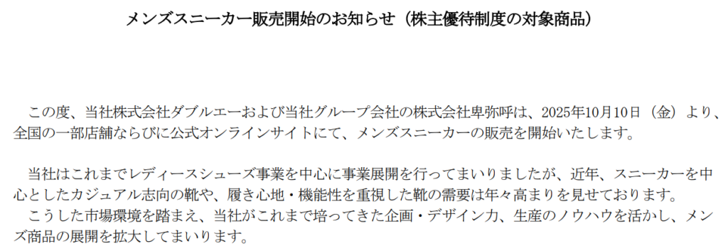 ②600株以上:①の優待に加え、卑弥呼公式サイト/オンラインショップで使える好きな靴1足が無料(定価税込4万円以内の商品が対象)