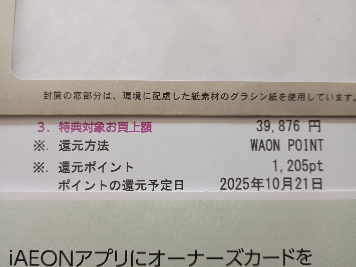 国内流通最大手のイオン(8267)から株主優待としてオーナーズカードの返金案内(正確にはポイント還元案内)が到着しました。