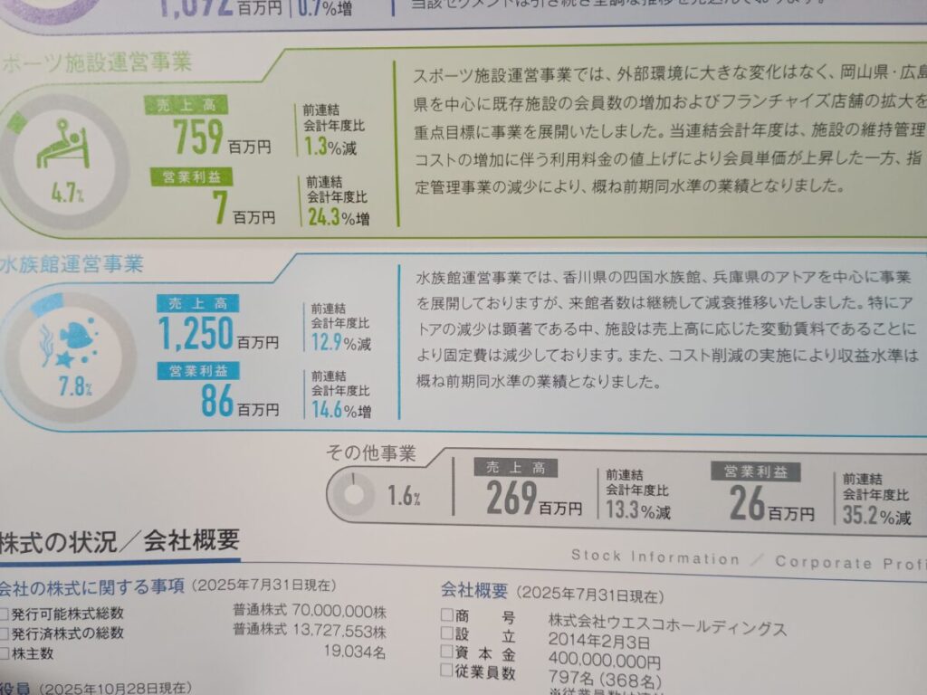 株主優待と一緒に届いた株主通信を見てみると、どうやらウエスコHDが運営している水族館はお客さんが減っている模様。