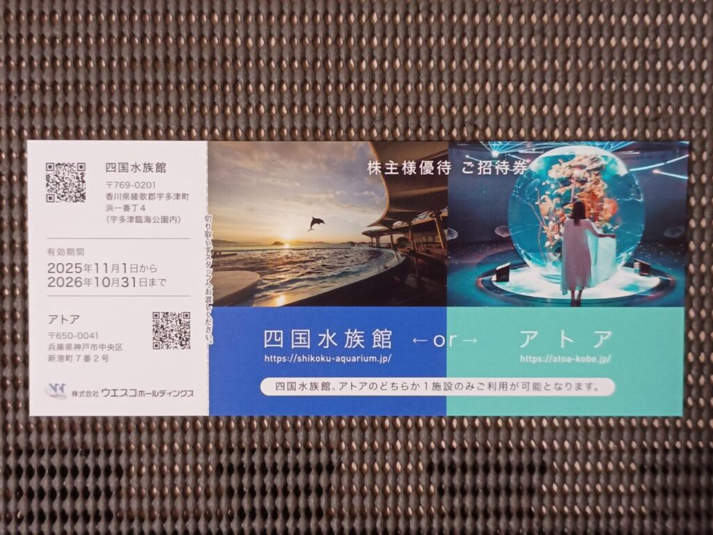 ウエスコHDの優待は今回の進呈をもって終了。まだ四国水族館へ行った事が無いので、最後の記念で行ってみたいです。