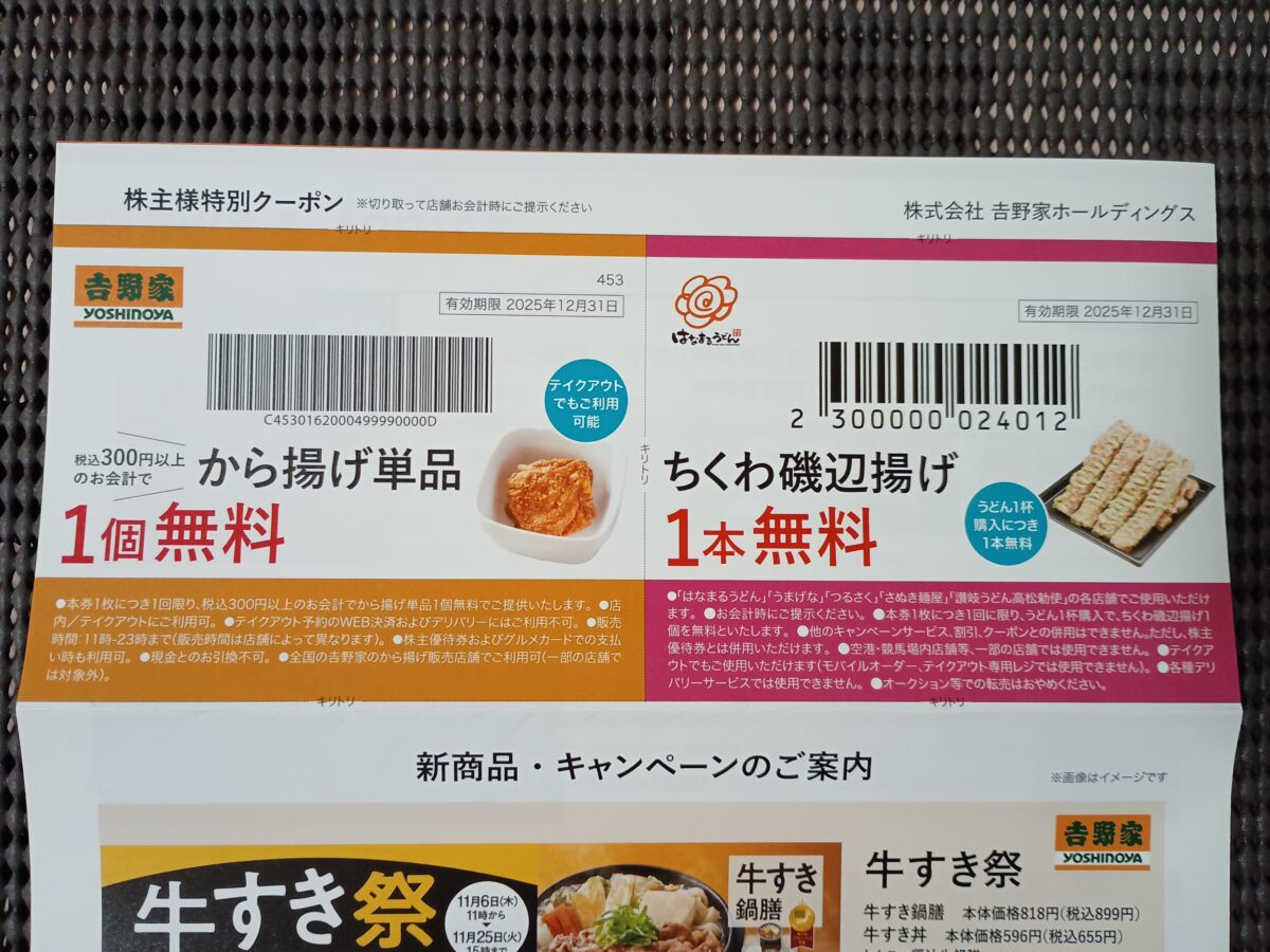 外食系の株主優待銘柄として有名な吉野家ホールディングス(9861)、こちらは私が投資を始めようと思ったきっかけの銘柄でもあります。