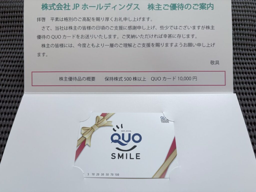 JPホールディングスの優待は30万円台の投資で年2回、1万円ずつクオカードがもらえるという豪華なものですが、過去2度優待制度を廃止した歴史がある事も頭に入れておく必要があります。
