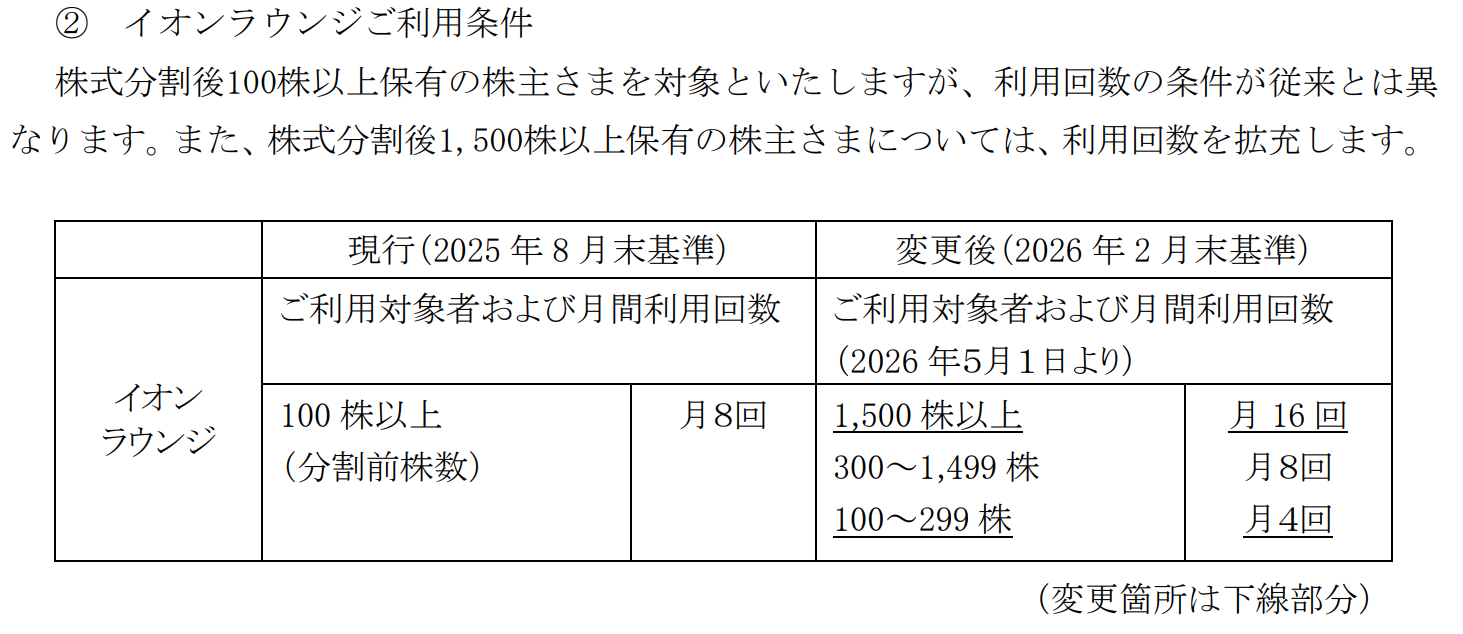 その内容は以前より「分割後詳細を発表します」と言われていたイオンラウンジの利用について。