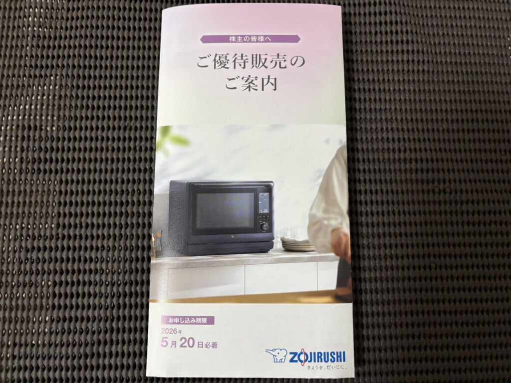 魔法瓶やホットプレートなどの販売でおなじみの象印マホービン(7965)から株主優待の案内が到着しました。