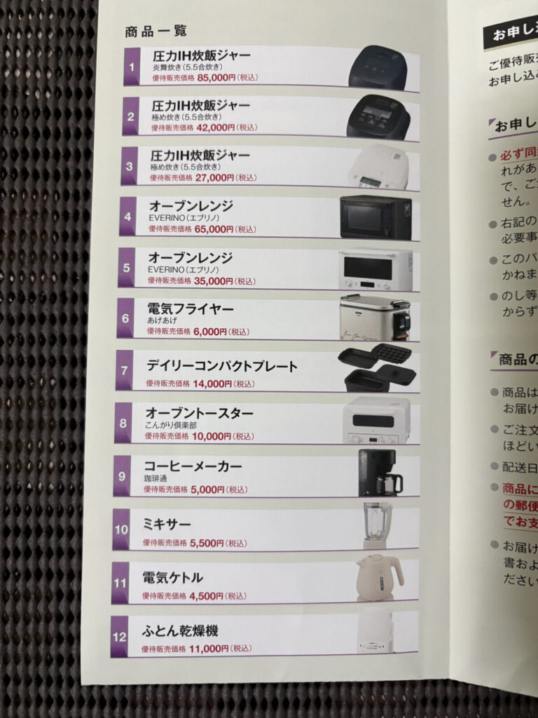 優待価格で購入できる商品一覧