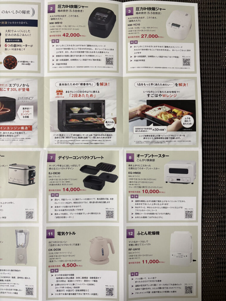 象印の優待制度は自社商品を優待価格で頂けるというもの。