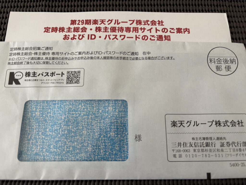 インターネット通販業界大手の楽天グループ(4755)から株主優待の案内が到着しました。