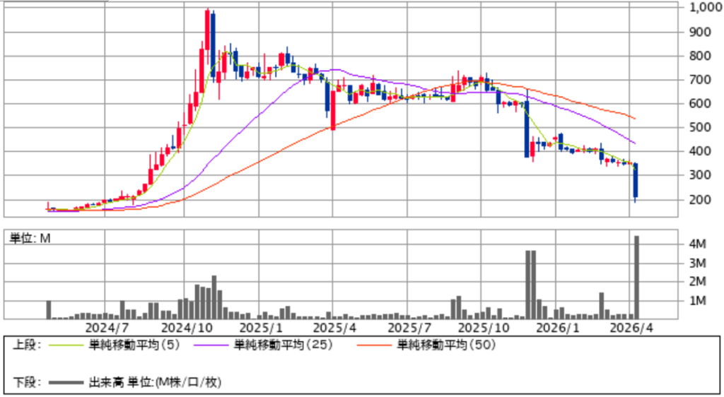 ウェルディッシュの株価が暴落