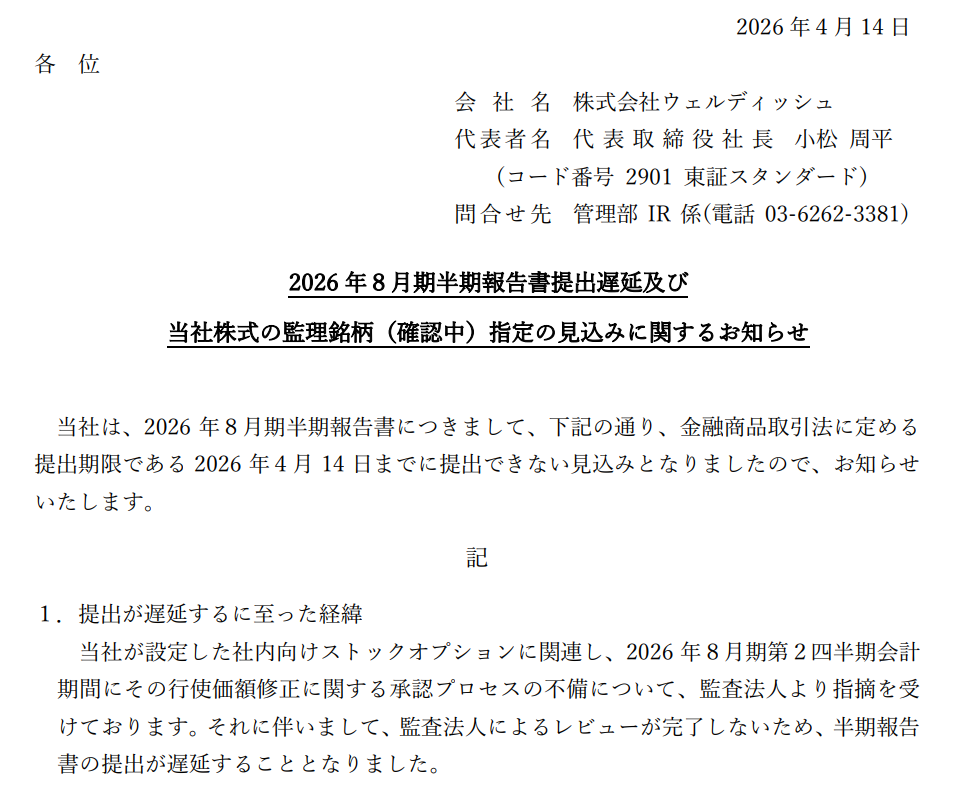 5月14日までに報告書が提出できなければ上場廃止となります。